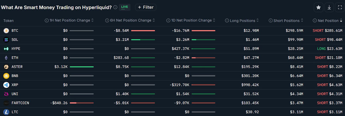 聪明的货币交易员在Hyperliquid上永久持有期货头寸。来源: Nansen