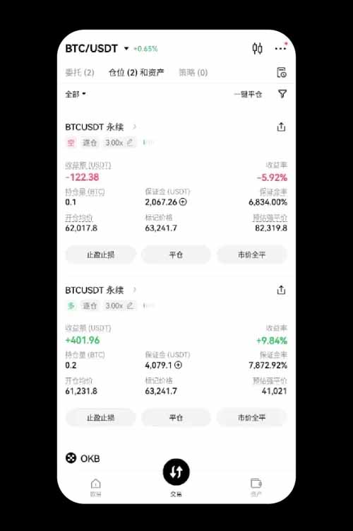 1.开仓以BTC/USDT杠杆交易为例:打开 OKX App【交易】-- 选择您要的交易模式【现货】 —打开右上角【杠杆】模式】。选择【全仓/逐仓】、【限价委托】、【USDT保证金】、【杠杆倍数】— 输入【价格】、【数量】—点击【买入BTC】—【确认】。