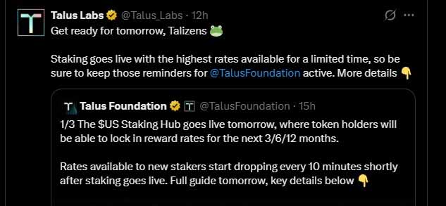 Talus 代币空投正式上线日期引发了全球热议。凭借零申领费、丰厚的质押奖励以及与顶级交易所的合作,Talus 美元代币的发行势头强劲,强势登陆市场。