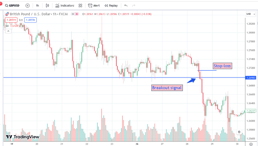 对于多头交易,将止损设置在突破点下方(空头交易则设置在上方),以限制如果突破失败时的潜在损失。