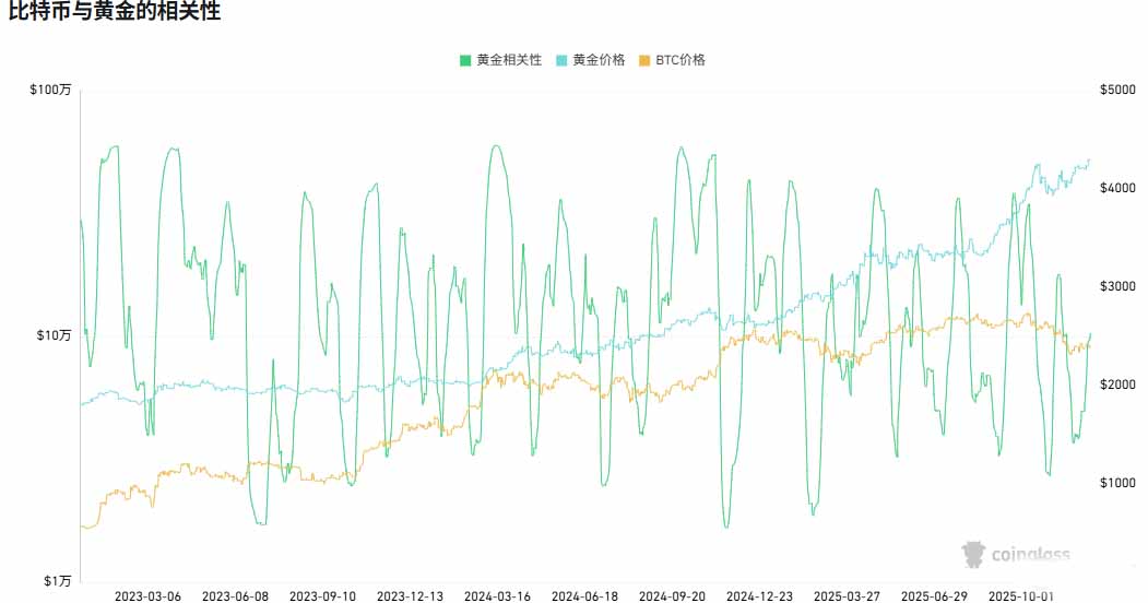 2025年的市场数据清晰地显示,比特币与传统科技股及广义风险资产的相关性显著增强,而与黄金的走势却频频背离。在多次地缘政治或经济数据引发的市场恐慌日中,比特币并未像黄金一样逆势上涨,反而常常跟随纳斯达克指数同步下跌。