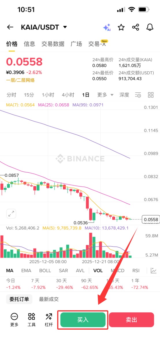 下面以币安为例,为大家演示KAIA币购买步骤教程。