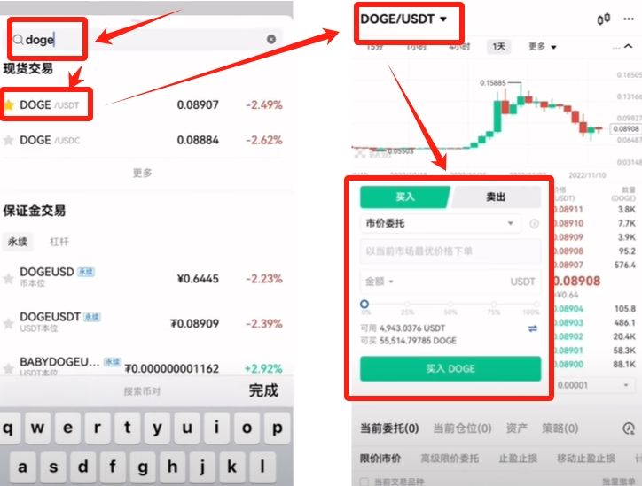 欧易交易所USDT现货交易购买、兑换狗狗币或其他币种操作教程