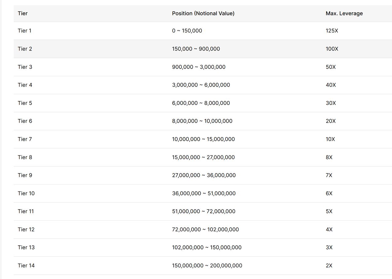 如上表所示,BingX 采用分级保证金系统。较小的仓位允许较高的杠杆,而较大的仓位则限制在较低的杠杆。随着您升级,初始保证金和维持保证金都会增加,从而降低大额交易破坏市场稳定的可能性。