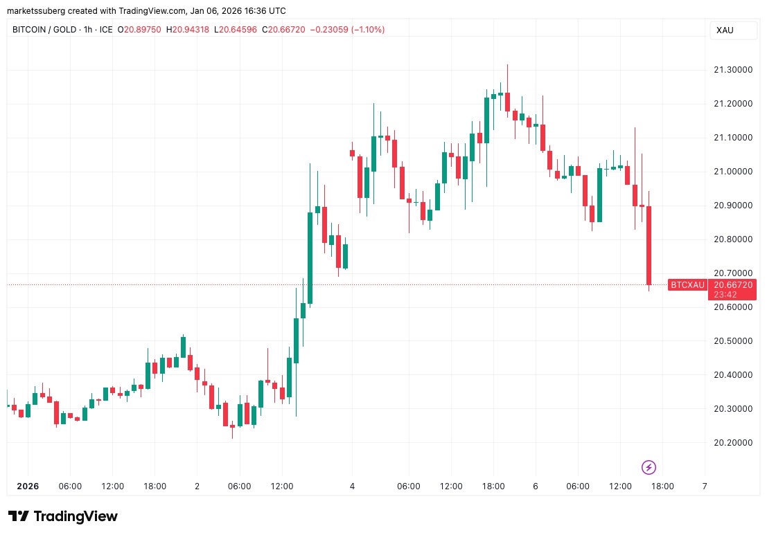 BTC/XAU一小时走势图。来源:Cointelegraph/TradingView