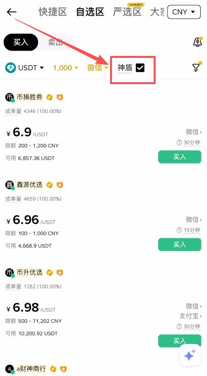 勾选**“神盾商家”**:这类商家缴纳了高额保证金。如果交易出现问题(如冻卡),平台会进行赔付,安全更有保障。