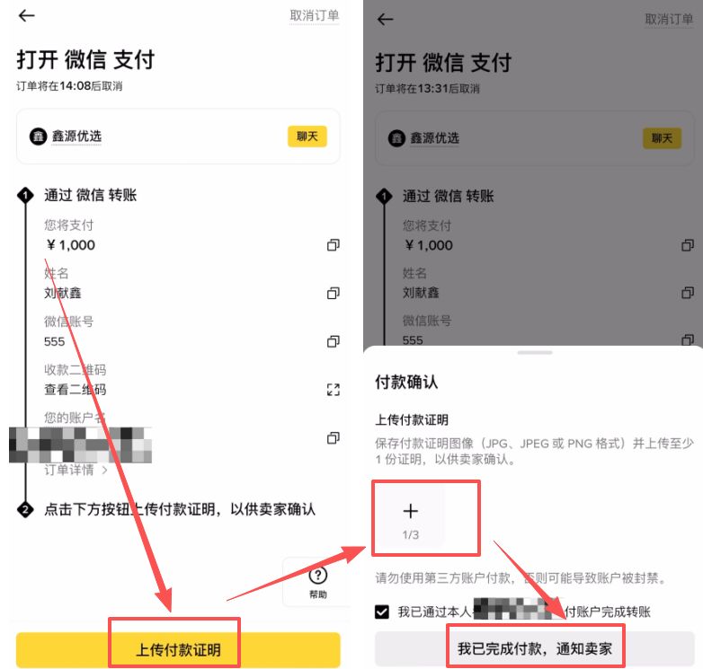 离开币安 APP,打开微信/支付宝添加商家好友或直接扫码转账。 ⚠️ 绝对禁忌: 转账时不要填写任何备注!千万不要出现“买币、USDT、BTC”等敏感词,否则极易触发银行或微信的风控冻结。