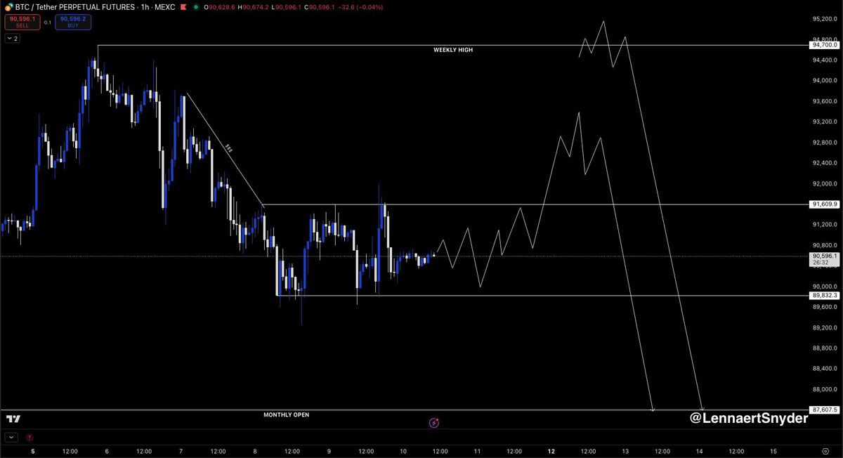 比特币/泰达币永续合约一小时图表。来源:Lennaert Snyder/X