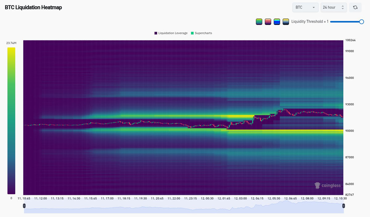 与此同时,监测资源CoinGlass的最新流动性数据显示,美元90,000是关键关注区域。