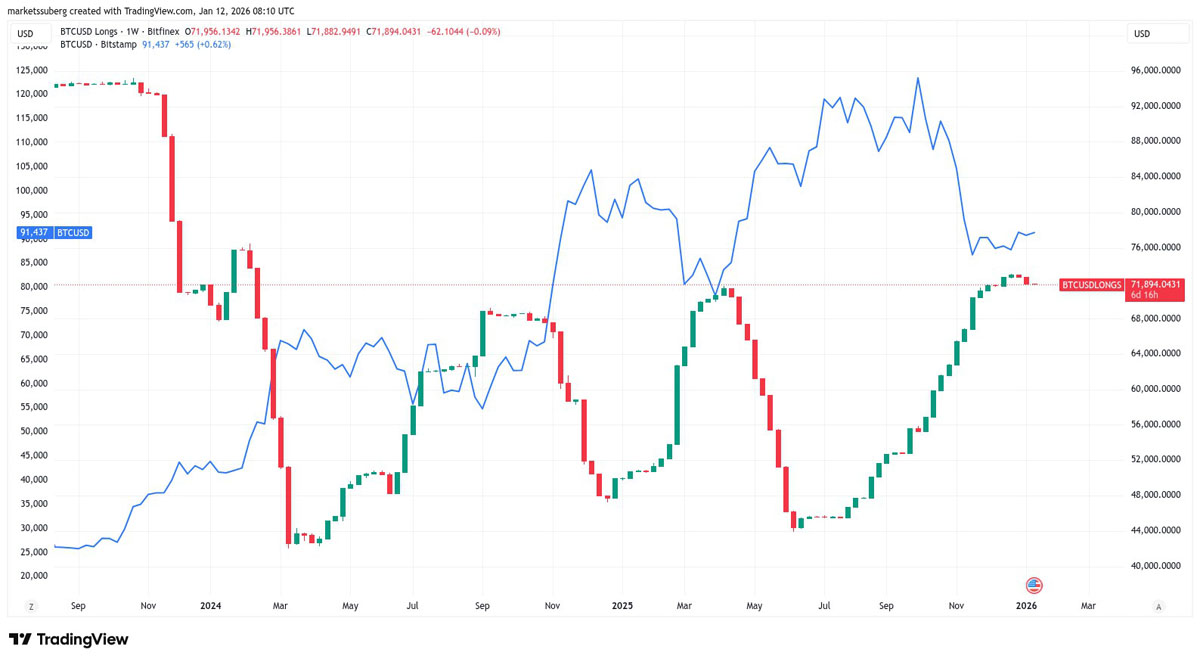 Bitfinex多头当前合计约71,800枚比特币,为自12月15日以来的最低水平。