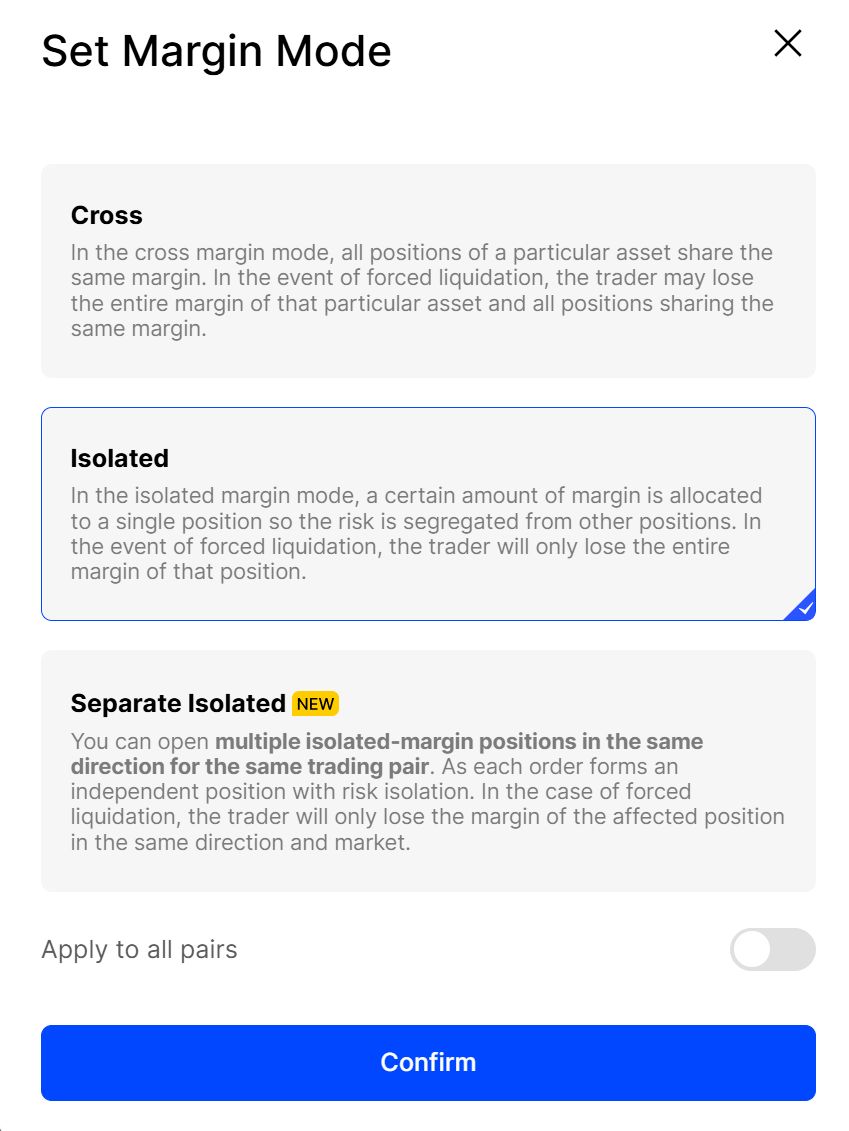 • 使用逐仓保证金,亏损仅限於单一仓位。