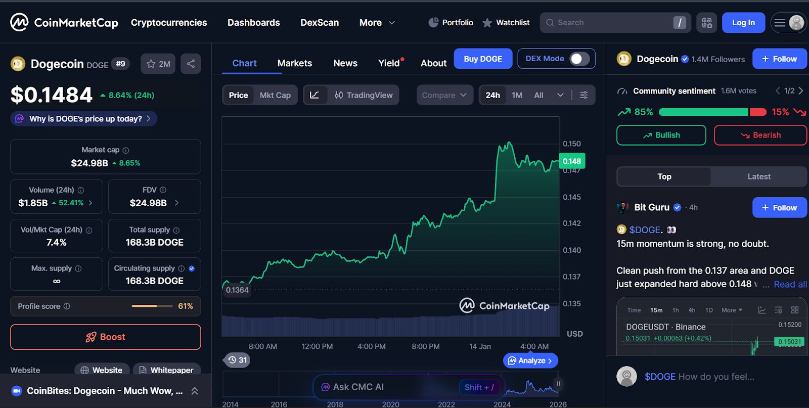 当人们寻找最值得购买的廉价山寨币时,狗狗币(Dogecoin)常常因其知名度而榜上有名。它没有提供复杂的功能,而这正是其吸引力所在。对于日常使用和品牌认知度而言,它扮演着明确的角色。这种简洁性有助于您决定它在您的投资组合中的位置。