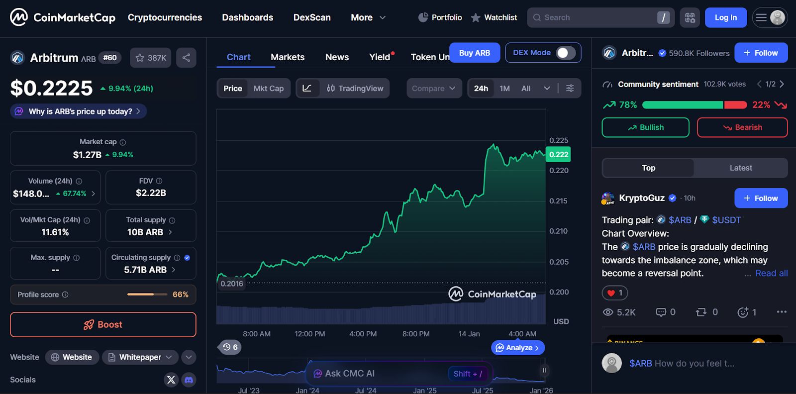 如果你正在学习如何投资山寨币,Arbitrum 提供了一个清晰的价值论证,它与以太坊的增长直接相关。你可以在各大交易所轻松交易 ARB,流动性充足。它的成功取决于实际使用情况,而非市场宣传。这使得评估它变得更加容易。