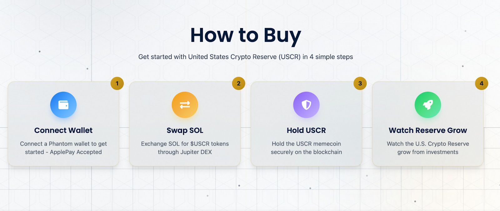 USCR 是一种基于 Solana 的迷因币,代表着围绕美国相关加密资产金库的社区;它不隶属于任何政府实体。
