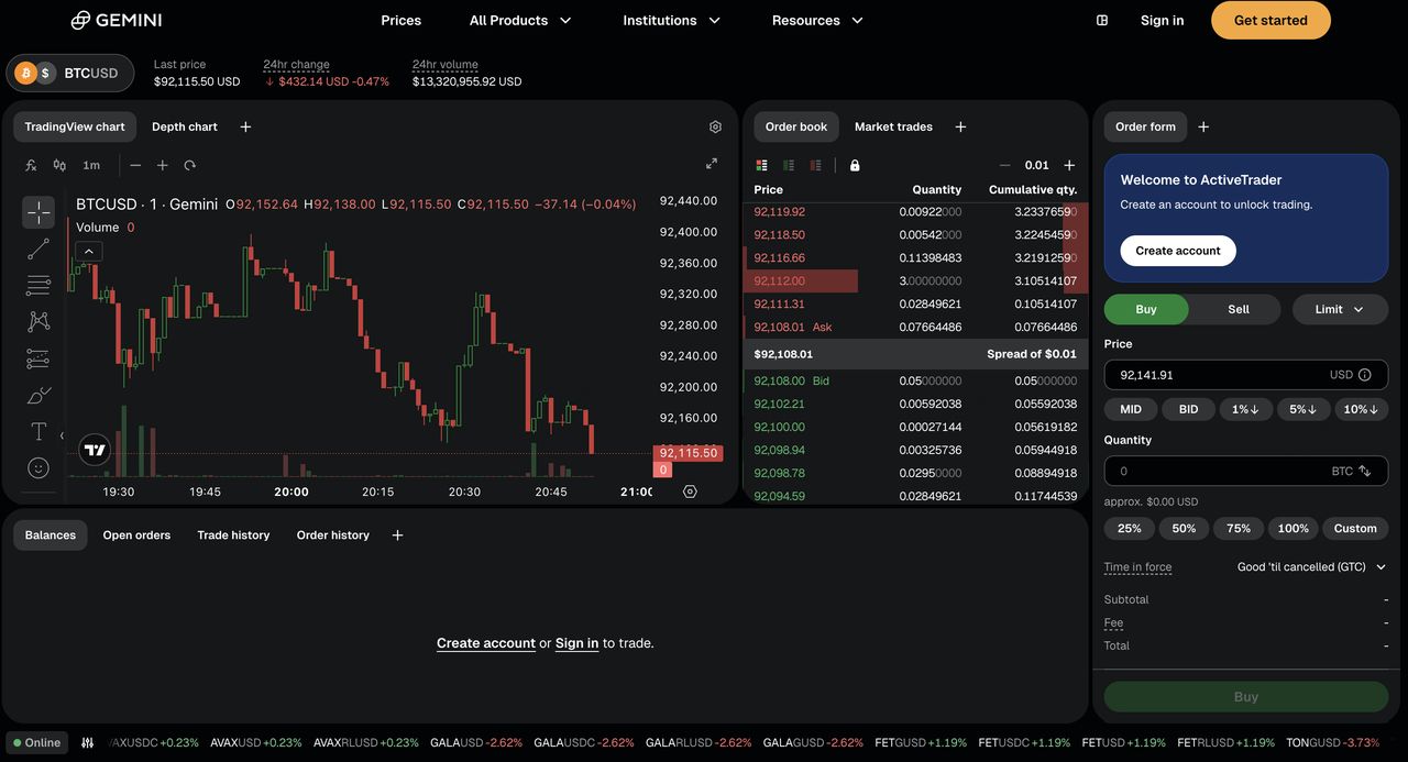 Gemini维持超过80种高品质资产的精选选择,做市商手续费为0.20%,吃单者手续费为0.40%,同时在适用限额内对美元余额提供FDIC保险,并持有SOC合规认证。该交易所优先考虑监管合规和机构级安全,使其成为监管司法管辖区内重视透明度和资产保护的用户的信赖选择。