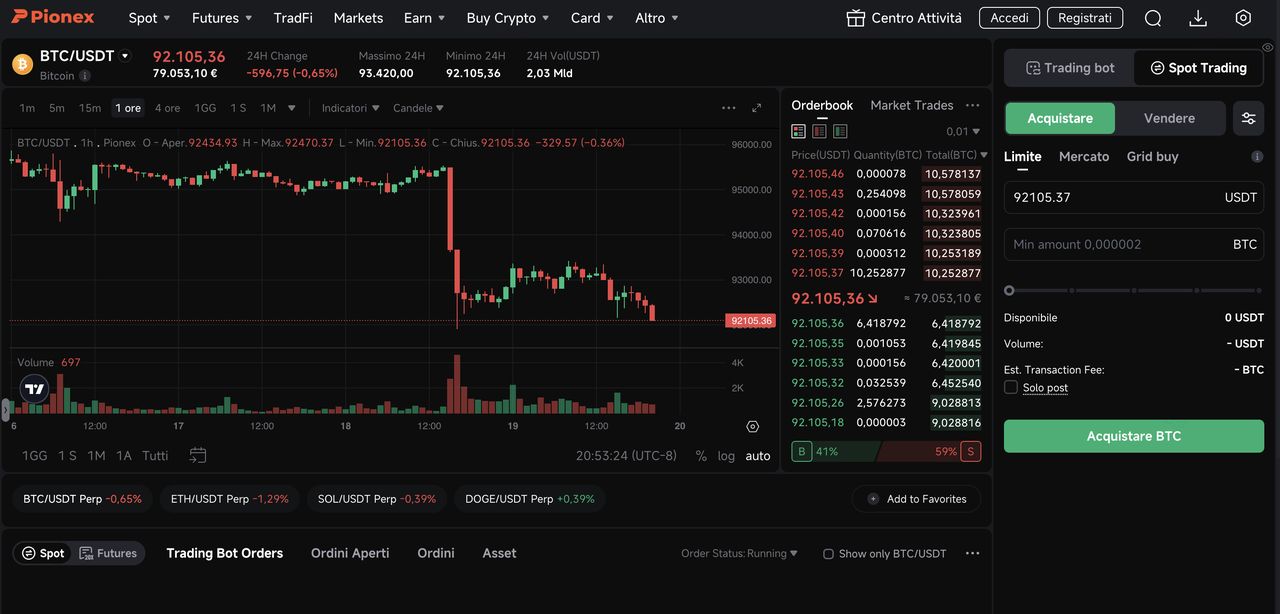 Pionex将现货交易与一套针对BTC/USDT和ETH/USDT等主要交易对优化的免费内置交易机器人结合,对某些存款方法适用零手续费,并维持100%储备支撑以及严格的AML进程。该平台擅长自动化网格交易和套利策略,使用户能够在最少持续管理的情况下从市场波动中产生回报。