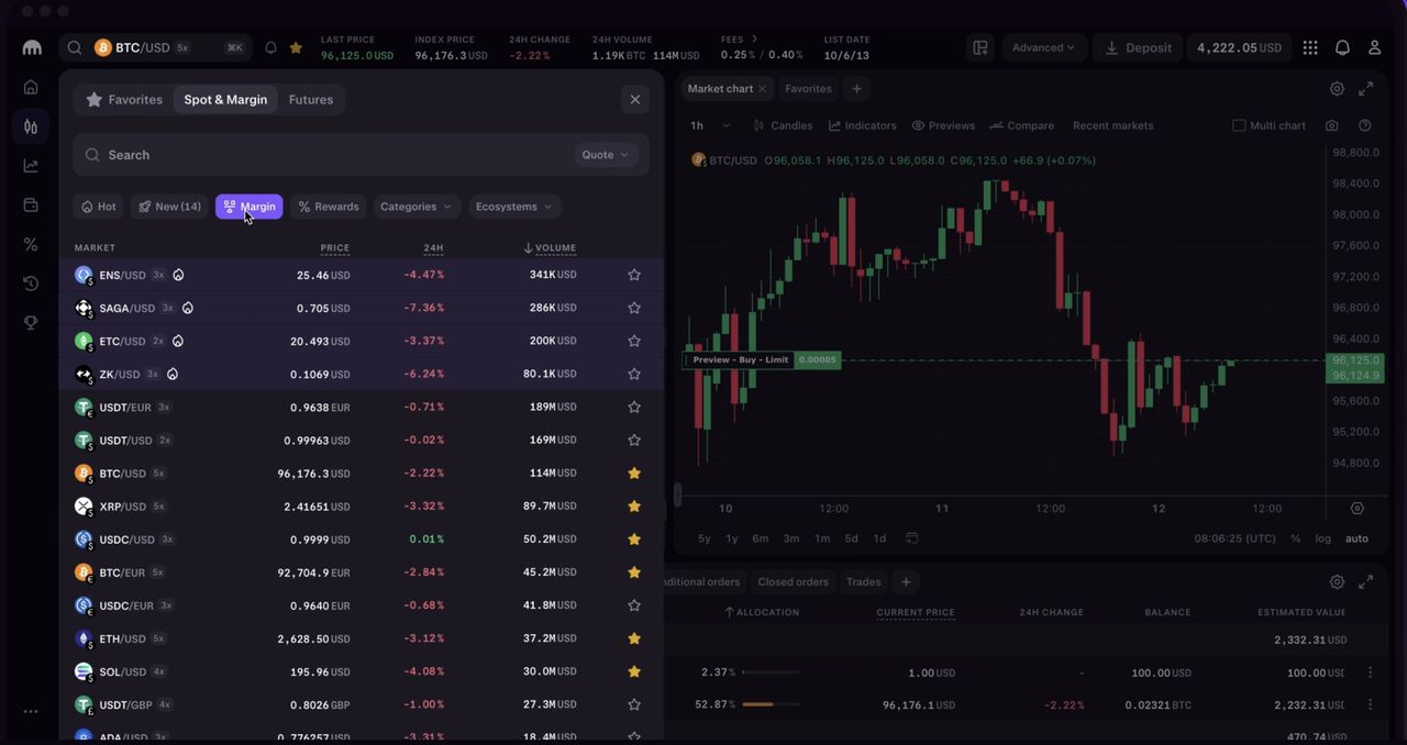 Kraken提供超过600种加密货币的访问,点差紧密,并通过其Kraken+订阅级别提供零手续费现货交易。该平台为合格资产提供高达22% APR的质押收益,并进行定期的、可公开验证的储备证明审计,以证明完全的资产支撑。来自超过190个国家的数百万客户依赖Kraken的专业级界面,其中包括深度订单簿流动性、高达10倍的保证金交易和对算法策略的强大API支持。