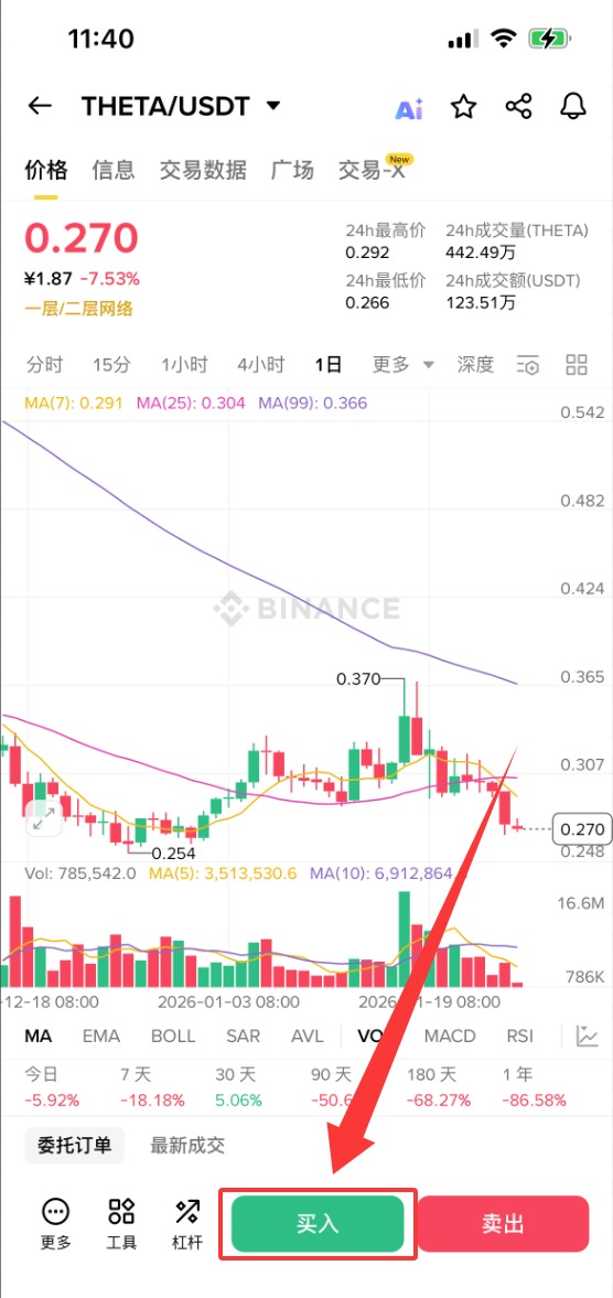 下面以币安为例,为大家演示THETA币购买步骤教程。