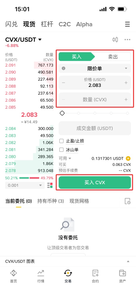下面以币安为例,为大家演示CVX币购买步骤教程。