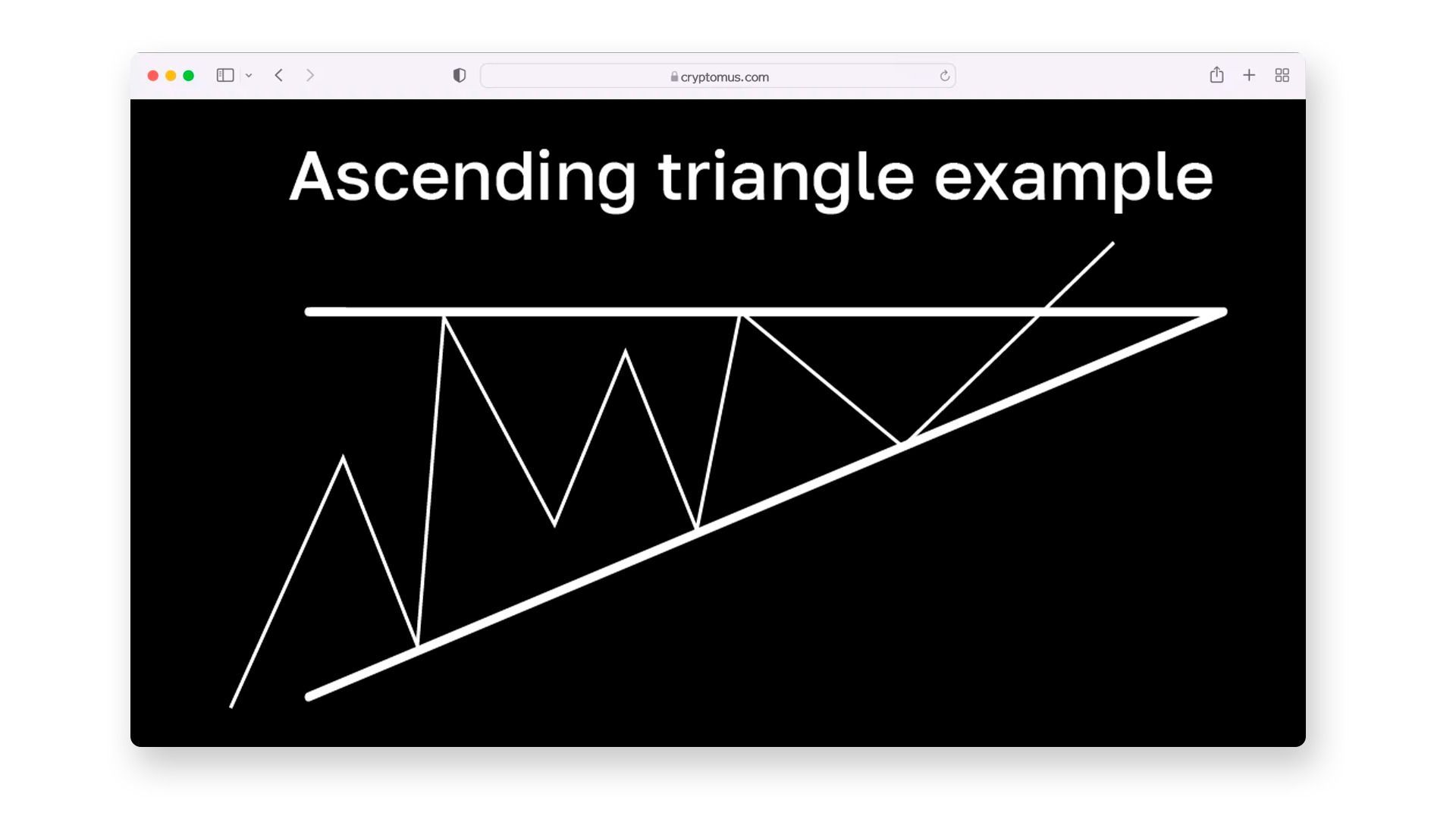 - 上升三角形: 平坦的上部阻力线和上升的下部支撑线。表明买家正在推高价格,向上突破的可能性很大。