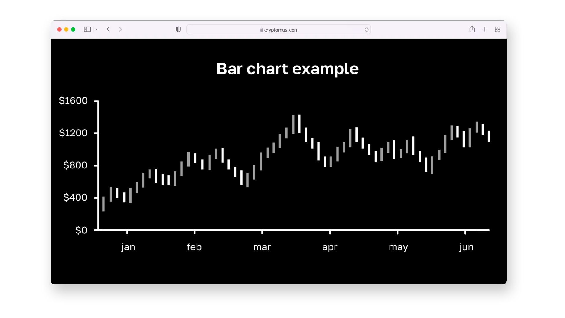 示例: 如果你正在检查以太坊的每日价格波动,条形图可以显示市场对重大新闻或事件的反应如何,使你能够发现价格盘整或突破水平等模式。