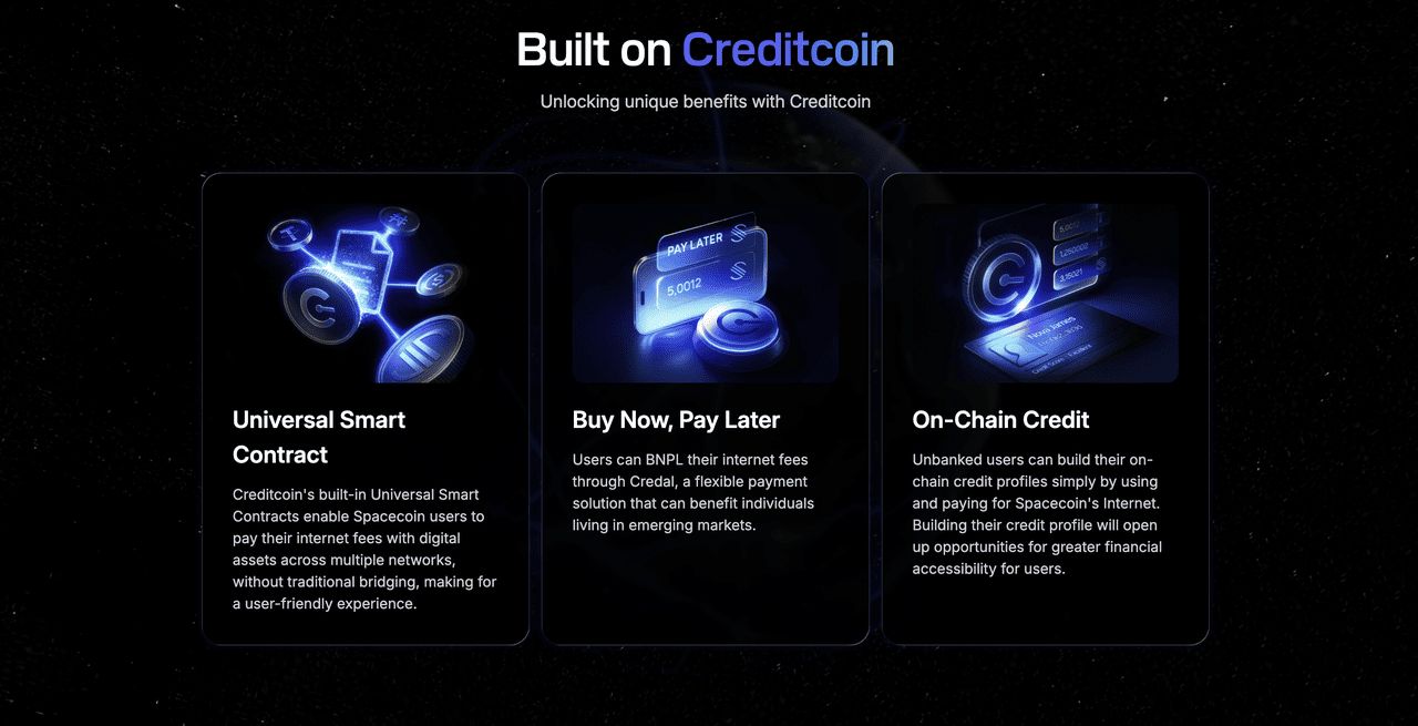 Spacecoin 的架构通过其卫星星座强调实体去中心化,实现全球连接而不依赖地面基础设施。它通过区块链智能合约融合透明和无需信任的操作,确保用户可验证的安全链上数据传输。网络的无边界可达性允许加密货币支付服务,惠及银行基础设施有限的地区。基于 Creditcoin 构建,它提供通用智能合约用于无缝跨网络支付、通过 Credal 提供先买后付选项,以及为无银行帐户用户提供链上信用创建,增强金融机会。