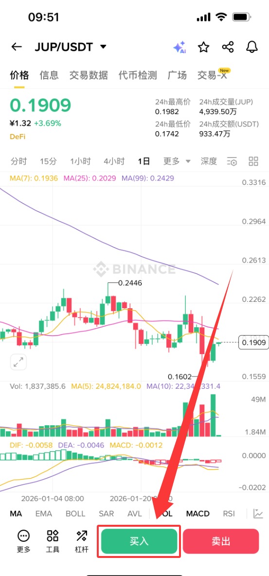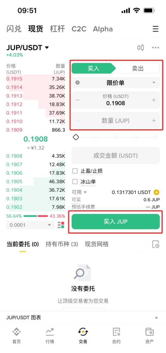 下面以币安为例,为大家演示JUP币购买步骤教程。