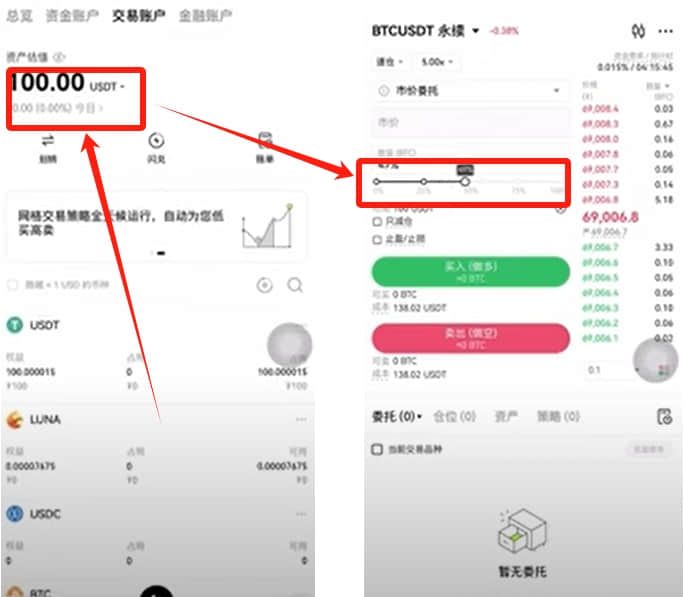 -20%×5倍×100USDT(本金)=-100%×100USDT(本金)=0U,意思就是我们本金100USDT亏完了。