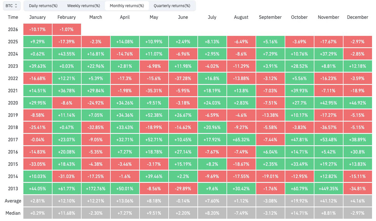 BTC/USD月度收益率(截屏)。来源:CoinGlass