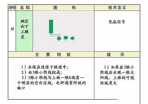 早晨之星东方明,带有缺口更见晴。末期下跌三连阴,随时进场捡黄金。