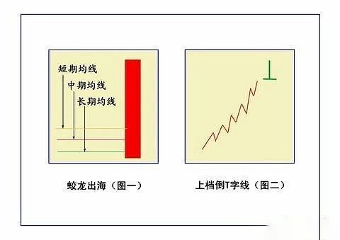 倒T.字线到底部,上影线长高八度。底部见到T.字线,庄家振荡把人骗。