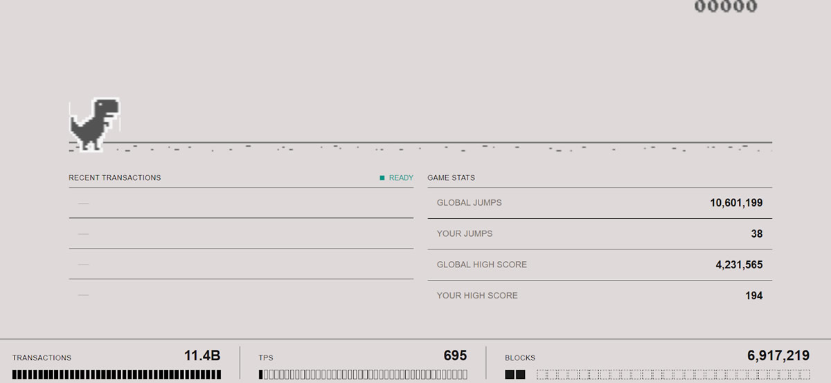 MegaETH 于2026/1/22 启动为期七天的主网压力测试,目标处理110亿笔交易、实现15,000至35,000 TPS。并于网站中设置MegaETH、Solana 与Base 的数据仪表板,上线多个链上互动应用提供交互,其中还有网络断线时的小恐龙彩蛋。