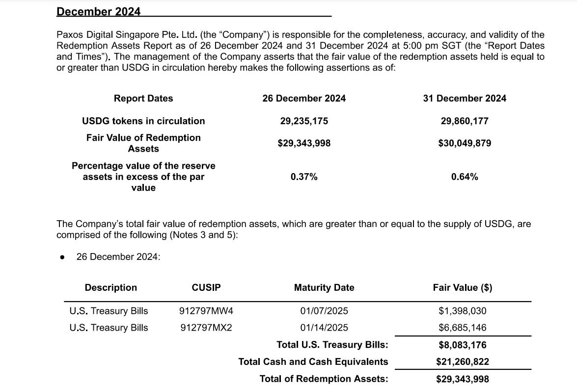 Paxos 维持由美元存款、短期美国国债及其他现金等价物组成的高质量流动资产储备。这使得用户可以随时将其 USDG 兑换回法币。