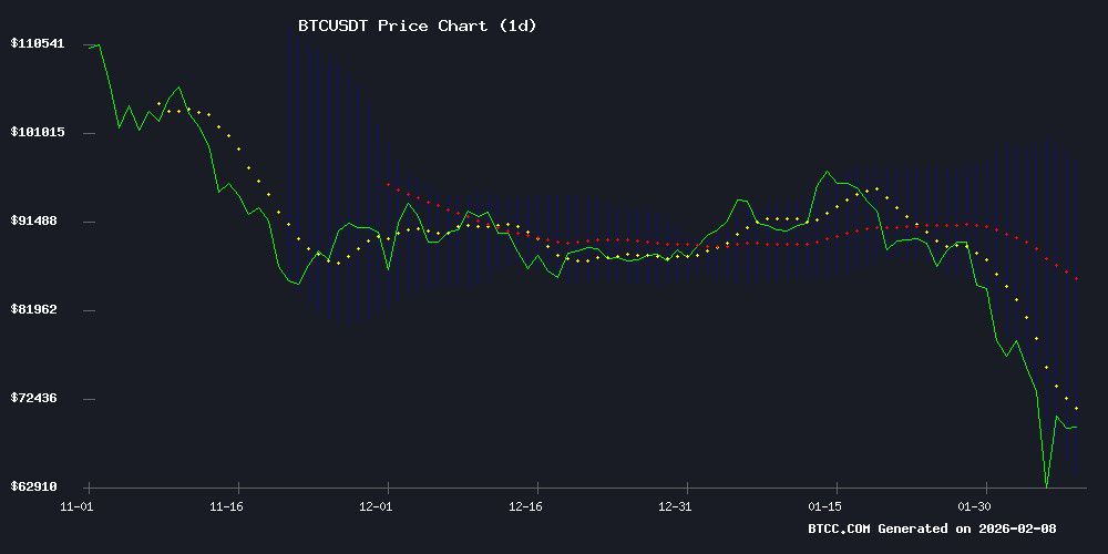 据BTCC金融分析师William称,目前交易价格为69,308.70 USDT的比特币呈现出复杂的技术形态。价格显着低于20日移动平均线(81,211.46 USDT),表明短期趋势减弱。然而,MACD指标仍为正值,柱状图(2,399.29)显示上涨动能尚未完全消散。价格在布尔带下轨(64,405.10 USDT)附近交易,这可能表明比特币处于超卖状态,并可能成为反转的潜在支撑点。预测显示,如果支撑位有效,比特币可能会在64,000 USDT附近测试支撑位,然后寻求反弹至81,000 USDT移动平均线。