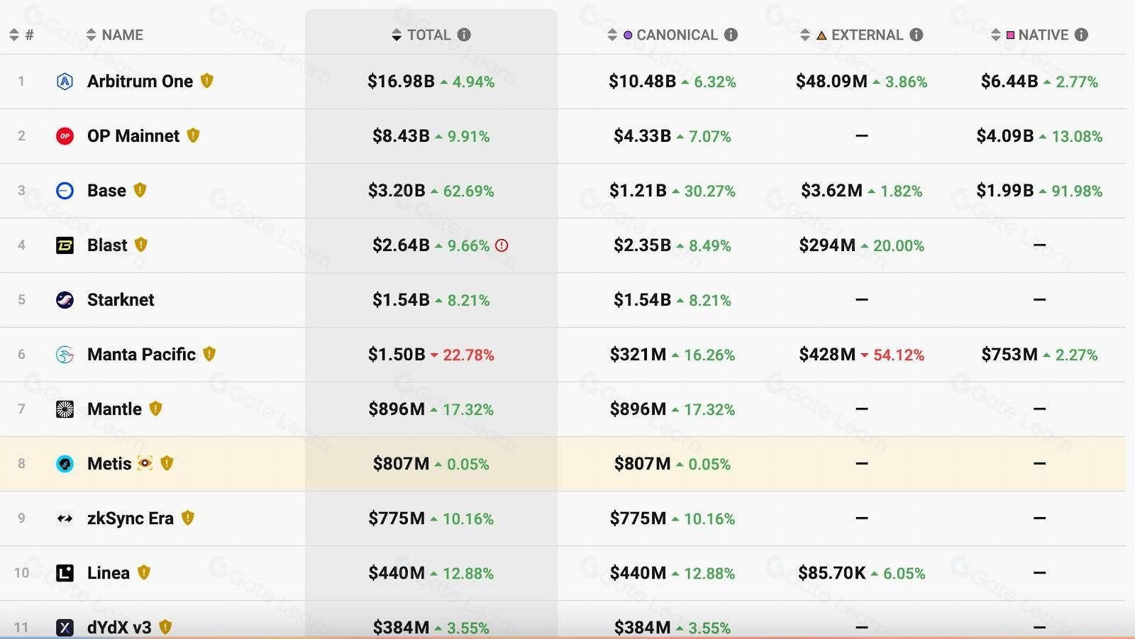 目前以太坊Layer-2的龙头项目当属Arbitrum,此前市场份额就已占比超过一半,通过空投ARB治理代币使得生态在持续火热发展,目前锁仓量高达169.8亿美元;其次是Optimism,在22年5月也凭借着OP代币的空投激励促进了TVL的增长,缩小了与Arbitrum的差距,目前总锁仓量84.3亿美元。