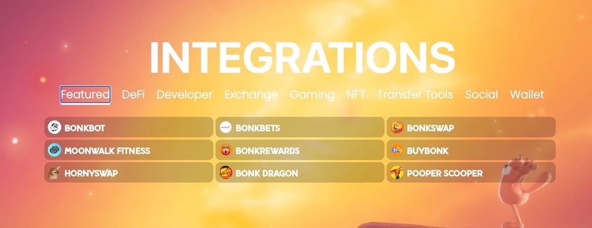 BONK 不仅仅是一个梗币;它正在发展成为一个实用的代币,与 Solana 生态系统中的 100 多个应用进程集成,包括 DeFi、NFT 市场和游戏。