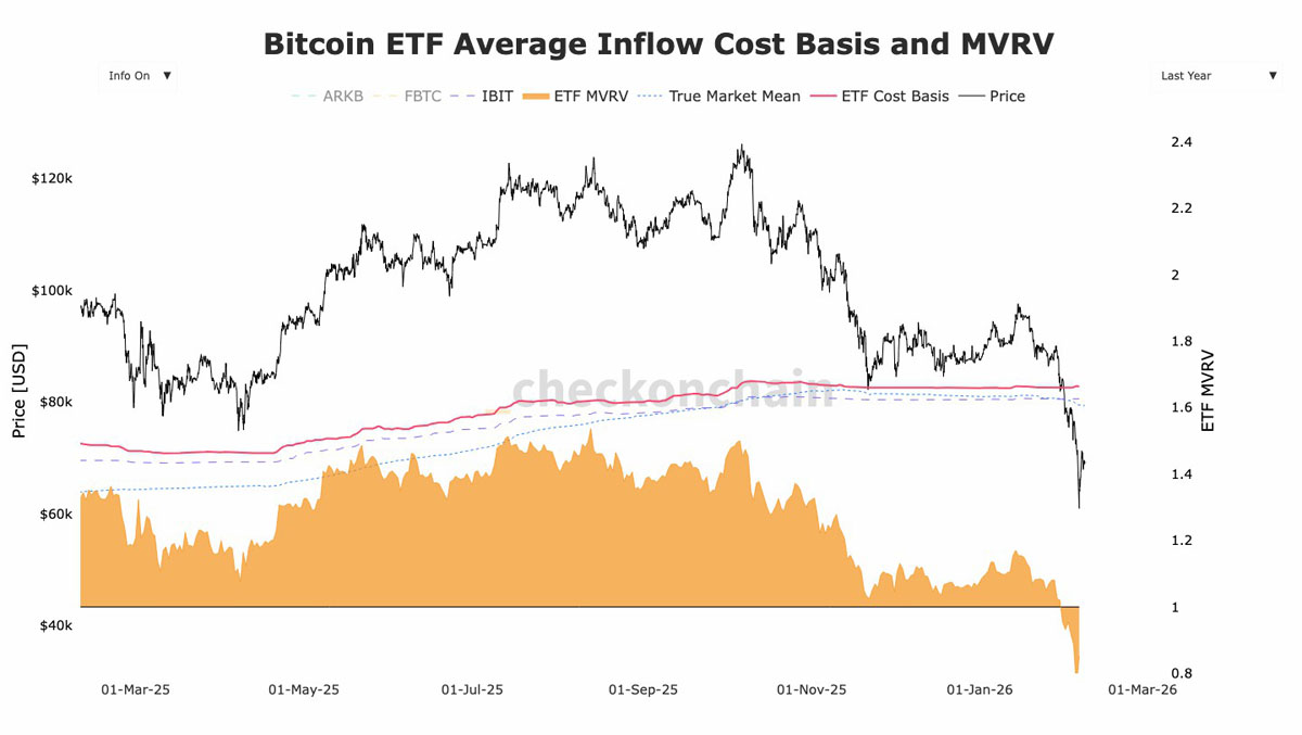 根据监测平台Checkonchain数据显示,美国现货比特币ETF当前平均买入成本为82000美元。