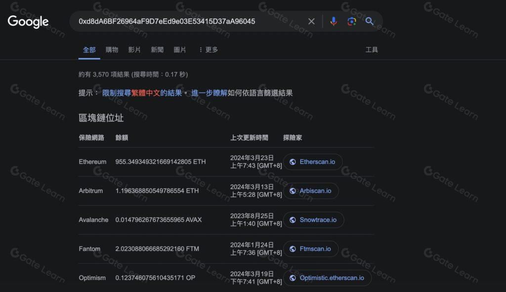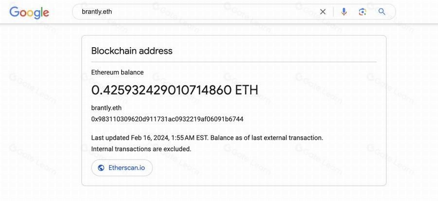 2023年5月,Google 引入了对以太坊钱包余额的查询功能,用户在 Google 搜索列输入指定的钱包地址,就能快速查询该钱包余额。