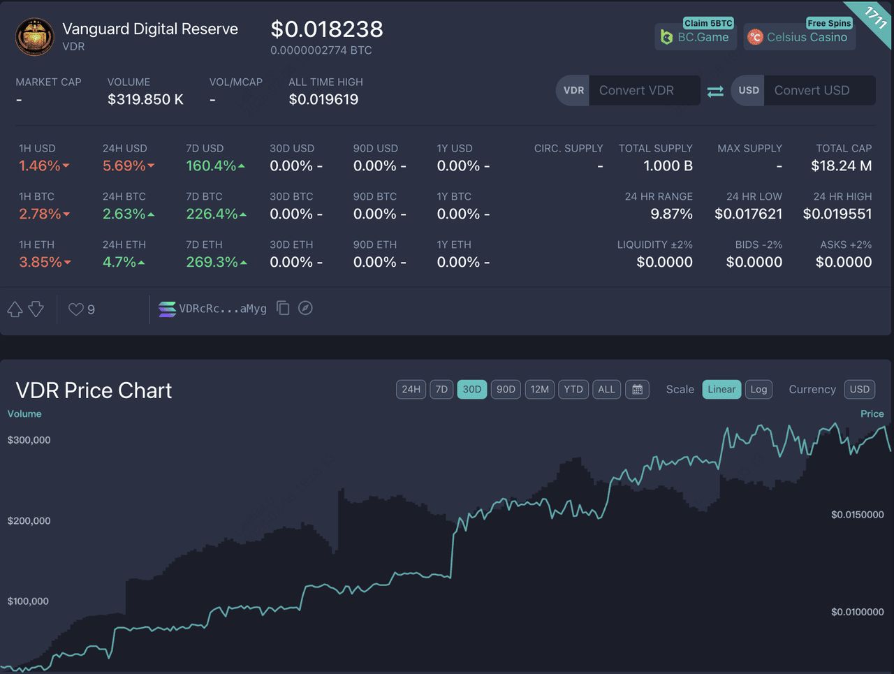 没有明显的直接诈 骗迹象,但VDR不是受监管或机构支撑的产品。它应该被视为高风险、叙事驱动的链上项目。