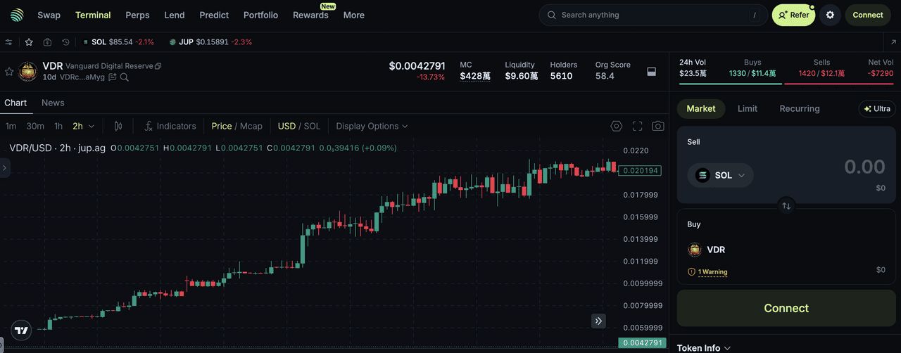 5. 极端波动性:尽管有「储备」品牌,VDR仍受到Solana生态系统典型的极端价格波动影响。「资源元」的转变或大持有者的突然获利了结可能导致数分钟内出现双位数百分比的下跌。