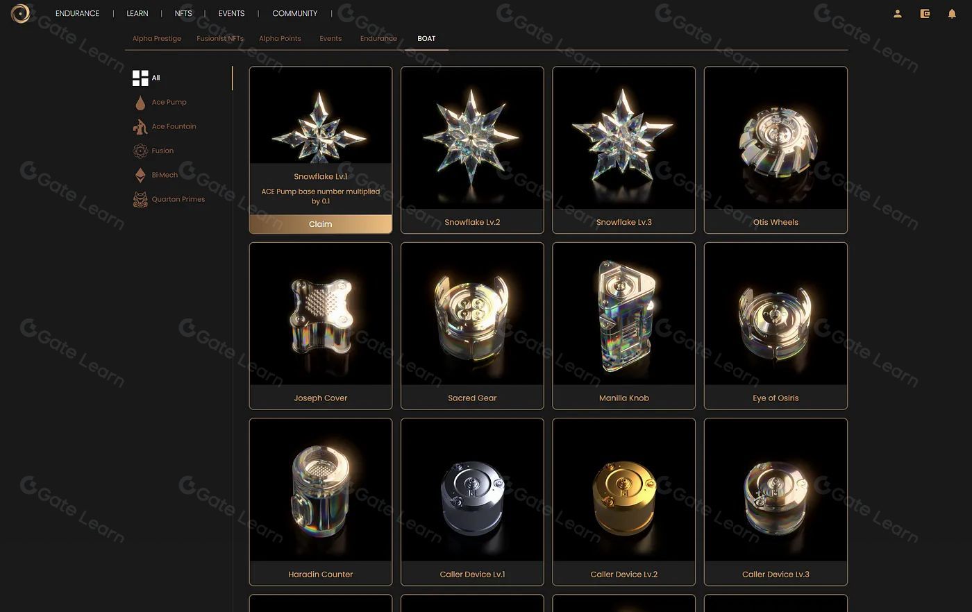 BOAT 是一个独特的标识符,用于追踪用户在 Fusionist 生态系统中的贡献。BOAT旨在帮助用户增加 ACE 收益,同时为他们提供游戏相关的福利。系统中共包含 36 种灵魂绑定代币,每种代币都拥有相应的 BOAT 分配额。这些代币分为 5 个等级,符合每个等级的 “铸造 BOAT” 条件的用户都可以铸造 BOAT 并获得相应的权益。