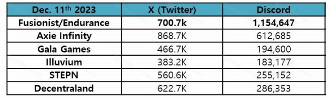 数据来源:Medium/@Coinmonks — 截至 2023 年 12 月 11 日 Fusionist 和其他游戏平台社交媒体关注度比较