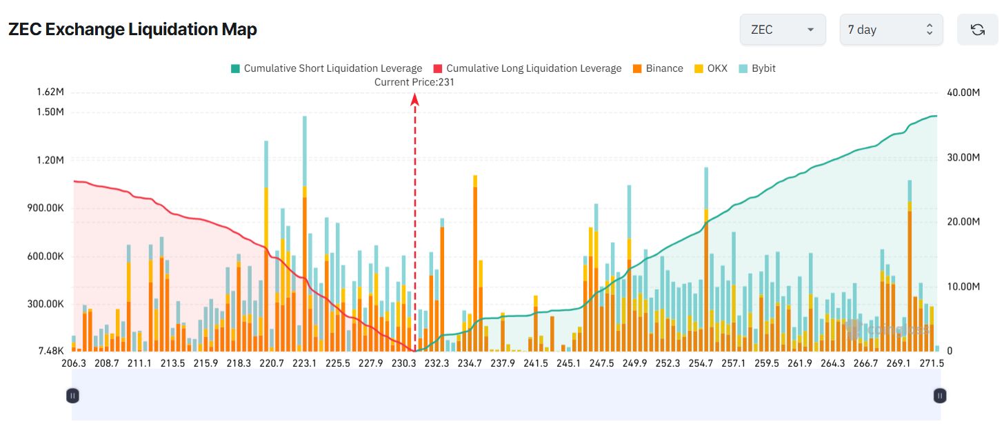 | 大零币(ZEC) | $238.91 | (反弹上涨) | 显着空头清算压力 | 空头头寸 | Vitalik Buterin公开捐款支持 |