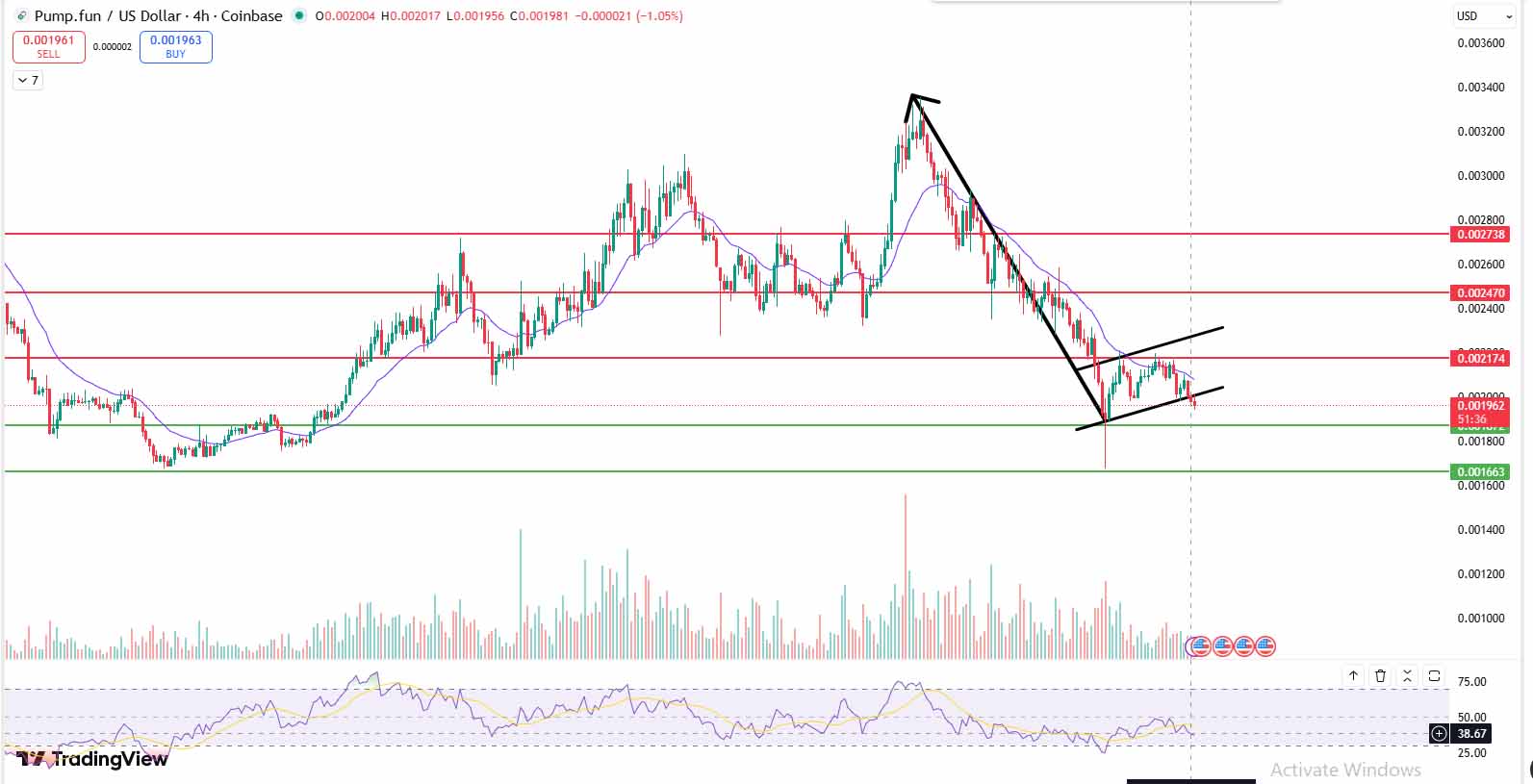 阻力位:0.002174美元至0.002470美元区间已成为强劲的上方阻力位。只要PUMP价格在该区间下方交易,任何反弹都可能被视为逢高卖出的机会。