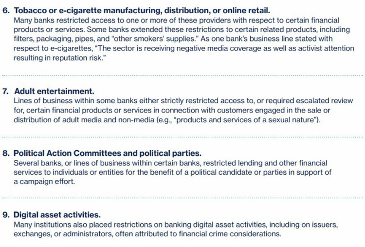 在美国,也出现了类似的银行业摩擦模式。立法者和业界将这一现象称为“阻断行动2.0”,用来描述联邦监管机构发出的非正式指导意见——该指导劝阻银行与加密货币公司保持合作关系。