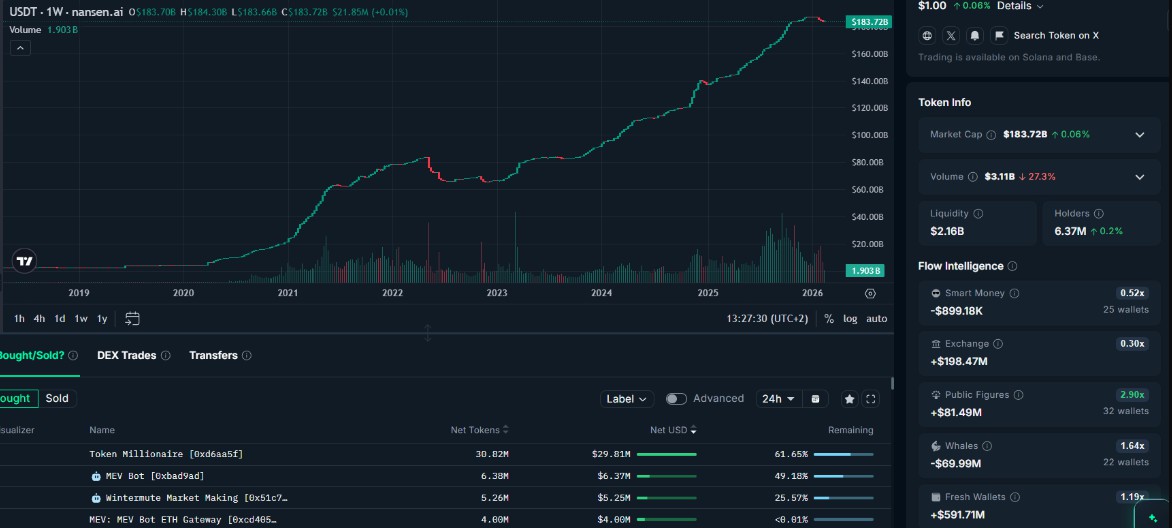 鲸鱼和聪明的资金交易者正在抛售USDT,但新钱包正悄然入场