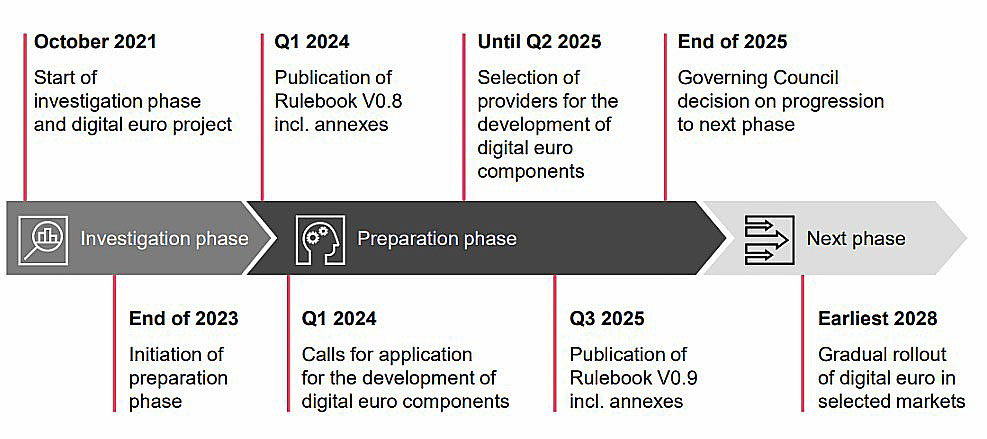 数字欧元推出设想时间表。来源:普华永道