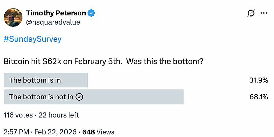 与此同时,彼得森周日进行的一项调查凸显了当前看跌的加密市场情绪。