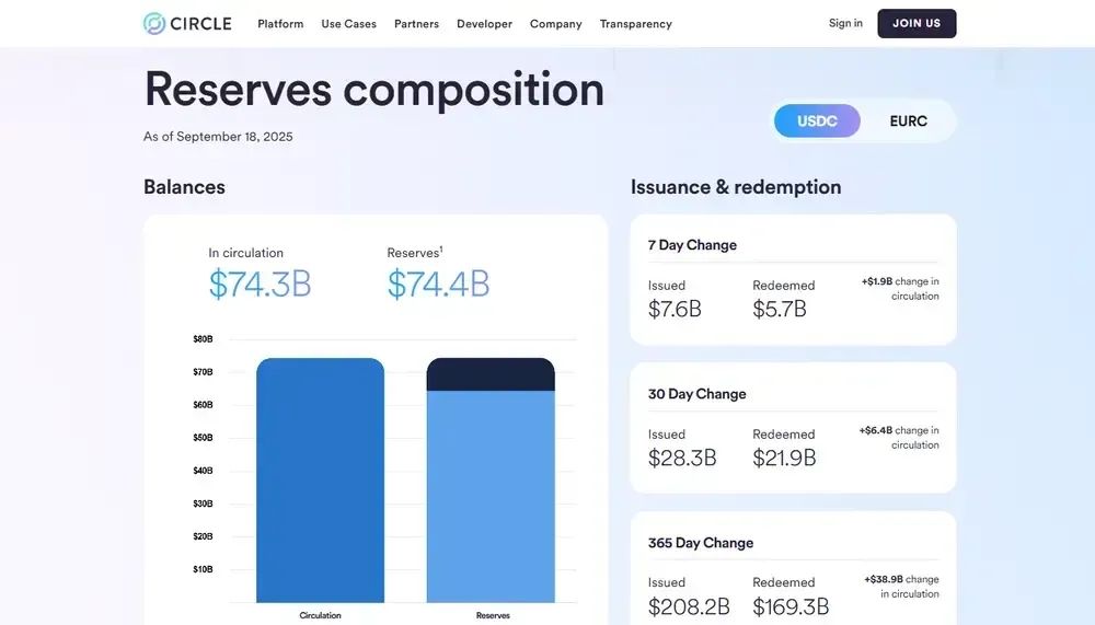 截至 2025 年 9 月,USDC 的流通供应价值约为 740 亿美元,每月定期结算数千亿美元的链上转账。Circle 根据美国货币传输法发行代币,持有新加坡 MPI 许可证,并符合欧洲 MiCA 框架。