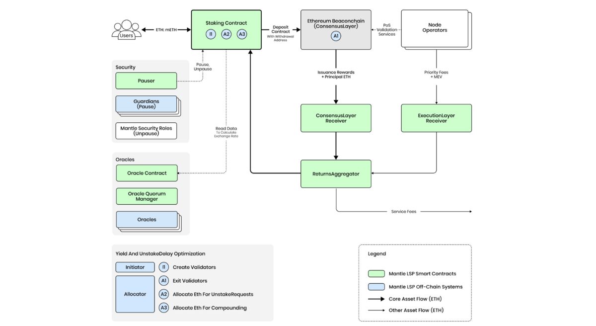 Mantle 根据以太坊上海升级设计出更简约的形式,强调 ETH : L1 上的 mETH 流程的完整性,而不会增加其他 PoS 代币和链的复杂性。